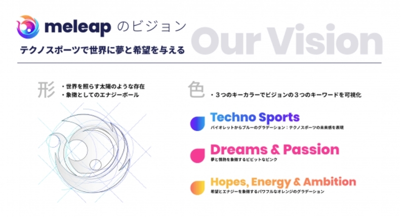 株式会社meleapの理念は、「テクノスポーツで世界に夢と希望を与える」ことです。